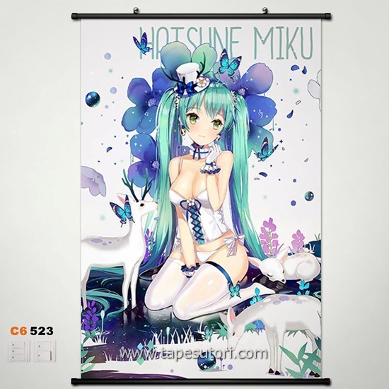 W21280 初音ミク アニメ掛け軸/タペストリー 80*60cm