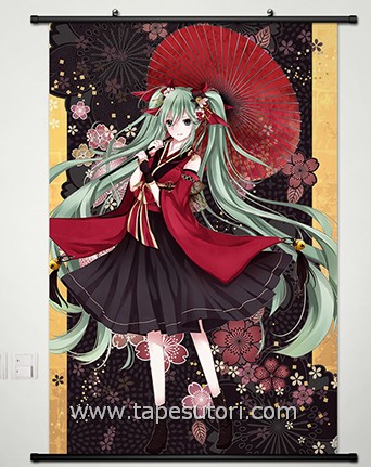W17263 初音ミク アニメ掛け軸/タペストリー 80*60cm