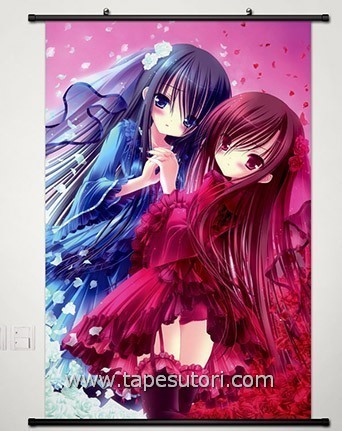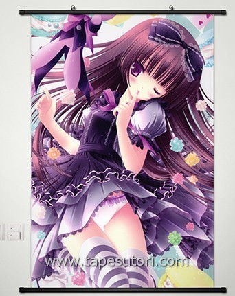 W00562 てぃんくるイラストレーションズ月夜茶会 アニメ掛け軸/タペストリー 60*90cm